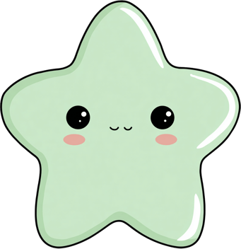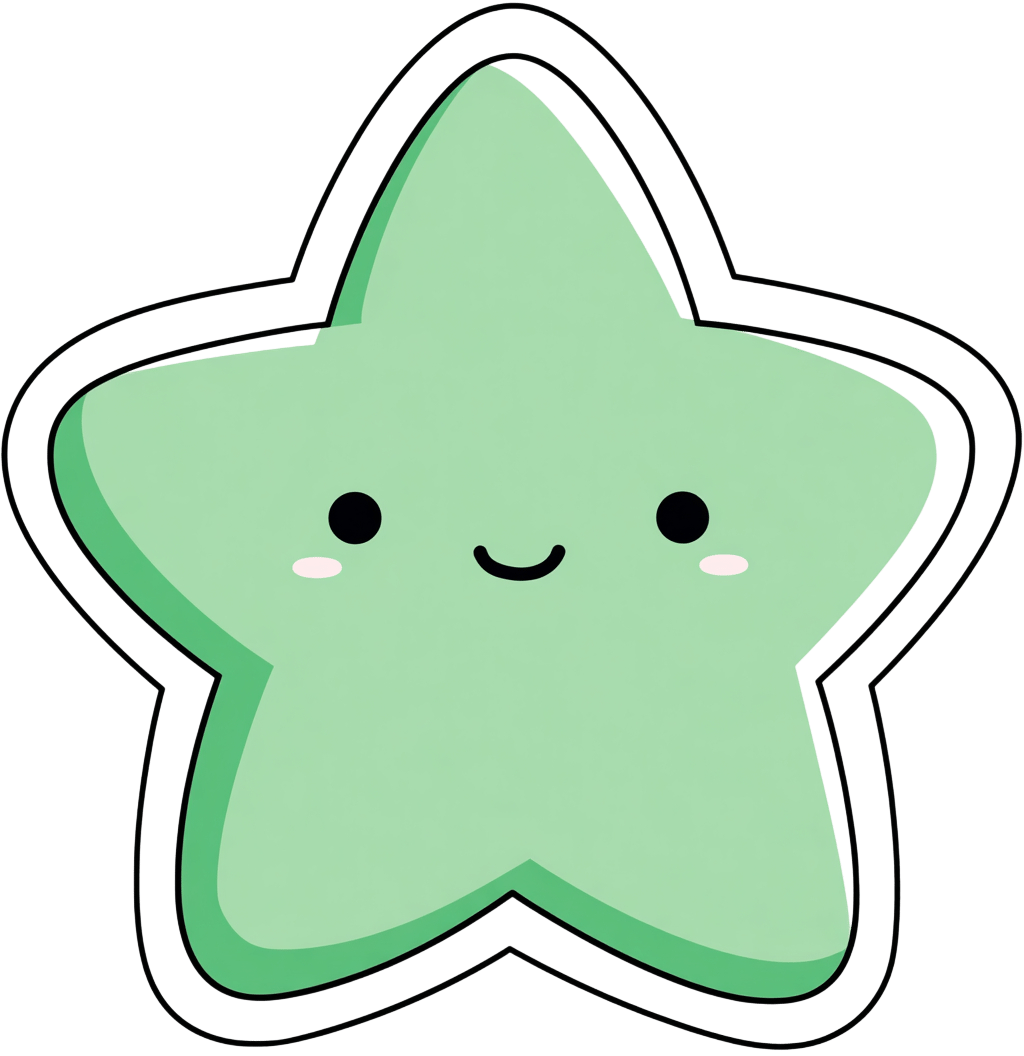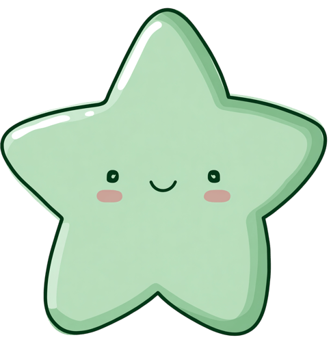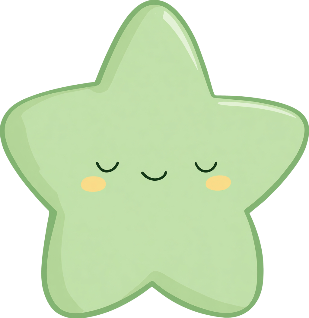 Cute green star cartoon character with closed eyes