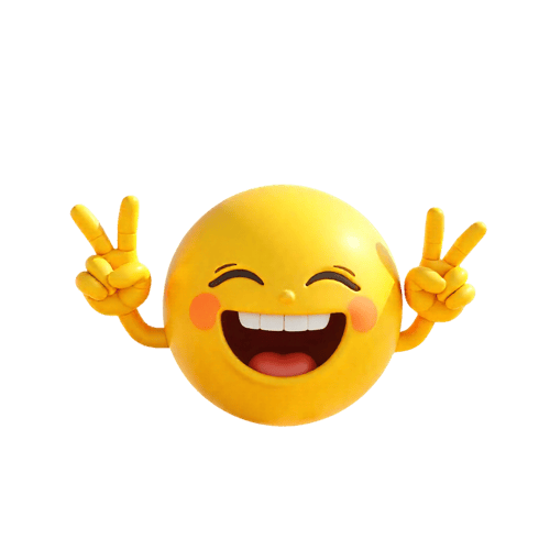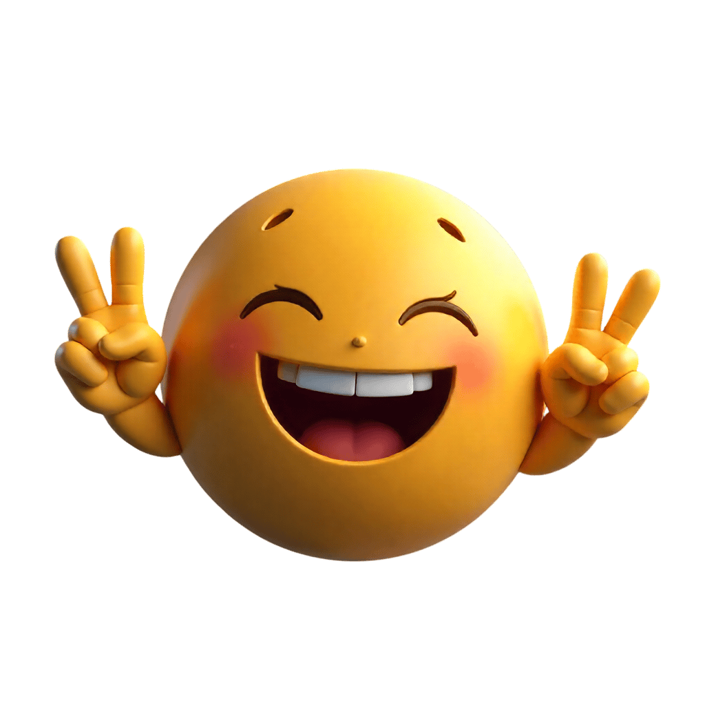 Smiling emoji with peace signs, a symbol of happiness