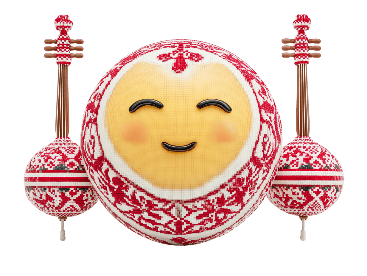 Smiling emoji with musical instruments for music, culture, and design