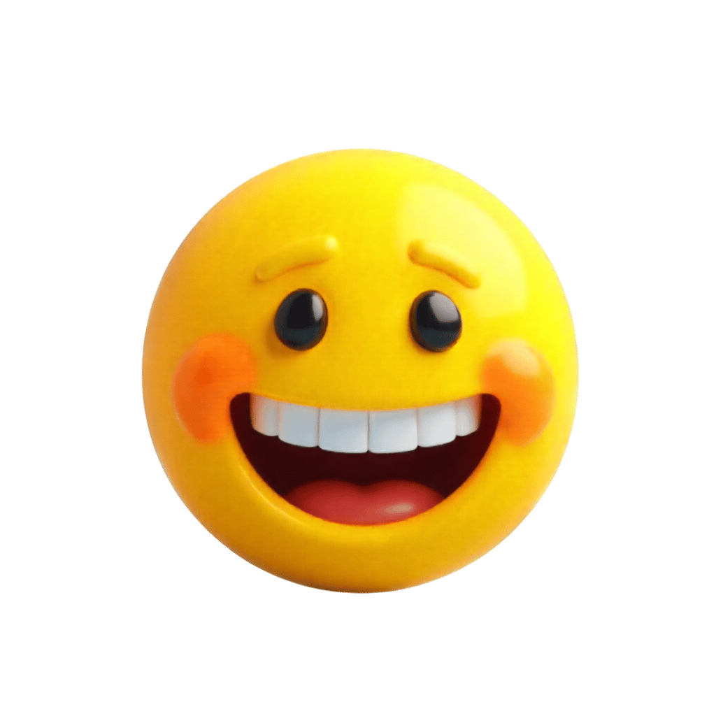 Happy smiling emoji with big white teeth and rosy cheeks