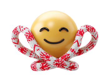 Smiling emoji hugging decorative rope