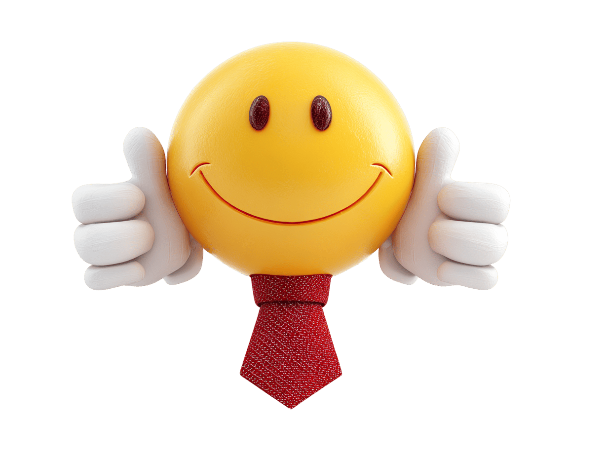 Smiling face with thumbs up and a red tie