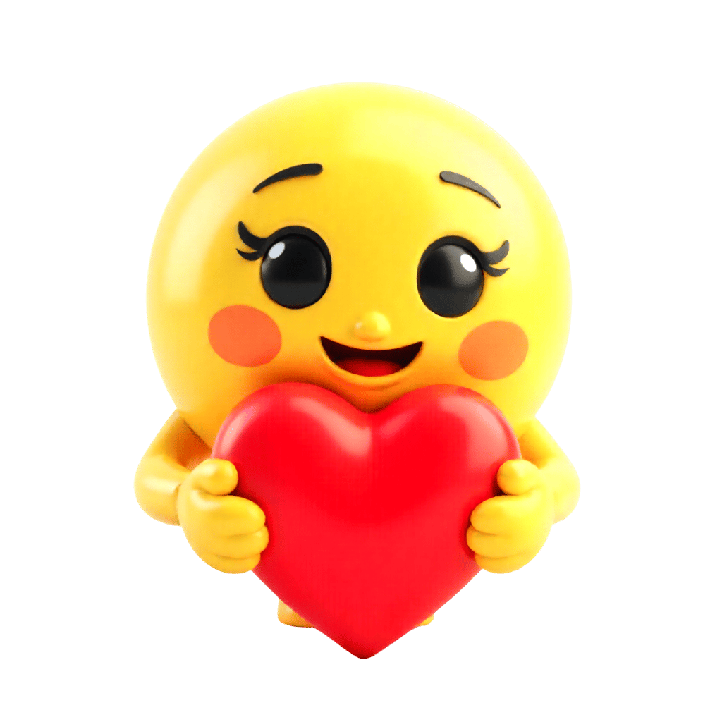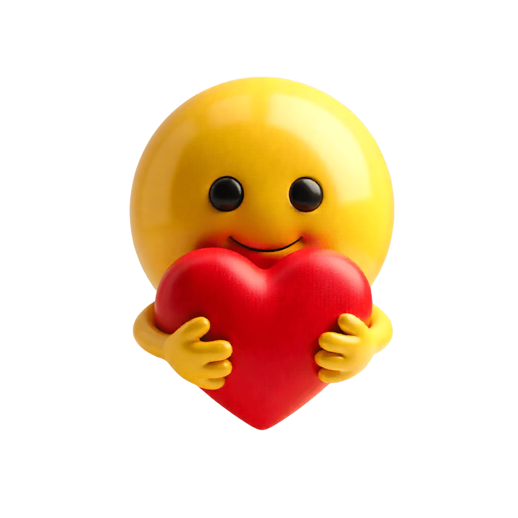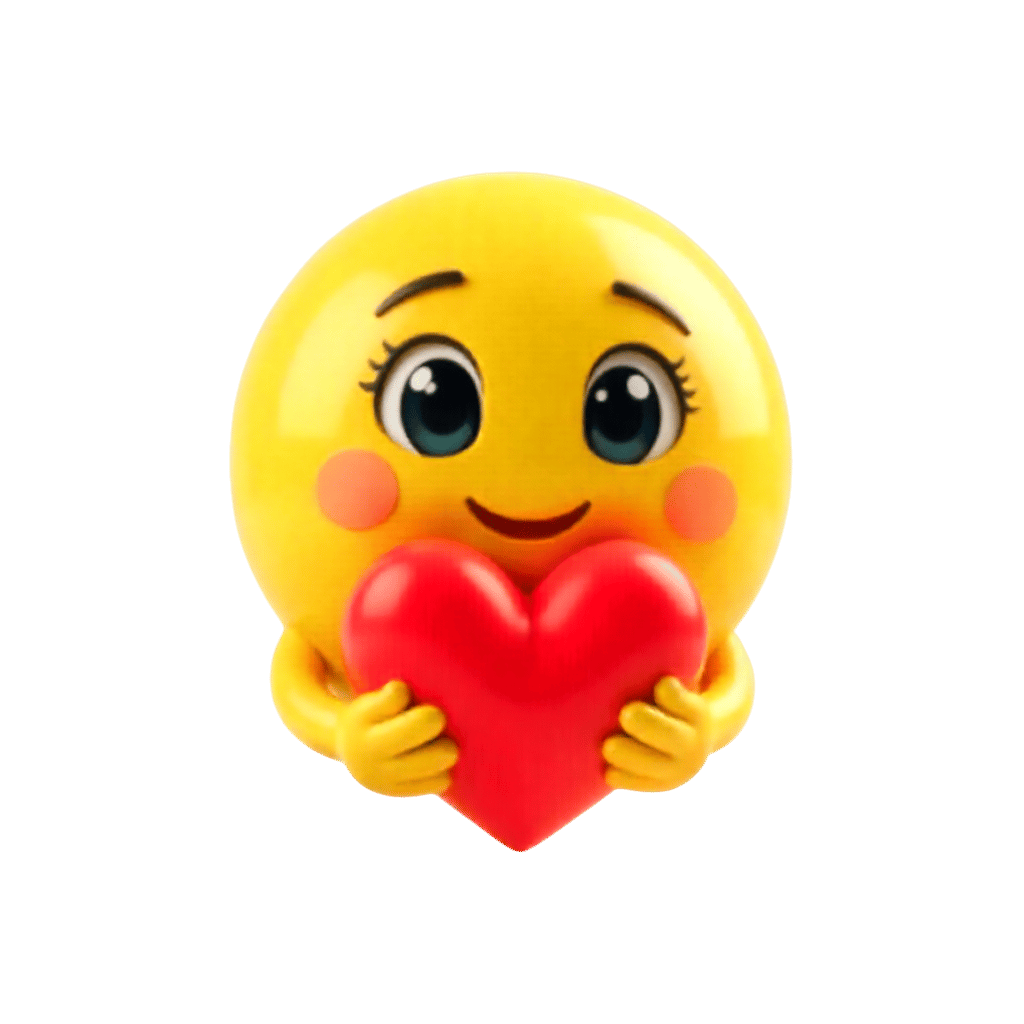 Smiling emoji holding a red heart symbolizing love