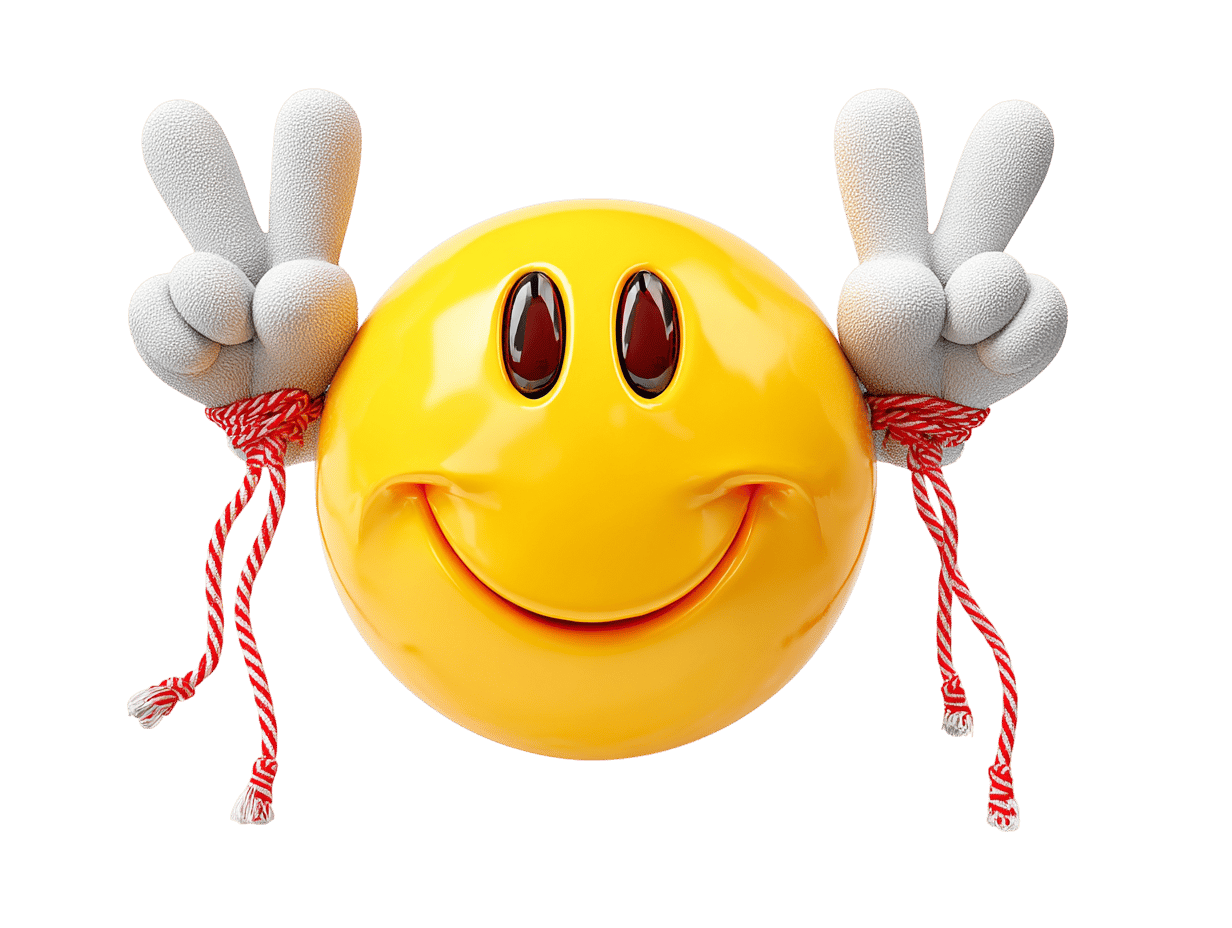 Smiling emoji with peace signs for positive content