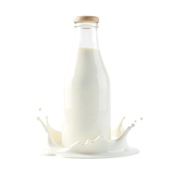 Milk bottle with splash, dairy drink, healthy beverage