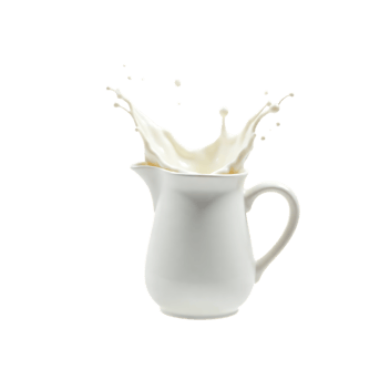 Milk splashing out of a white pitcher