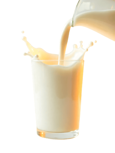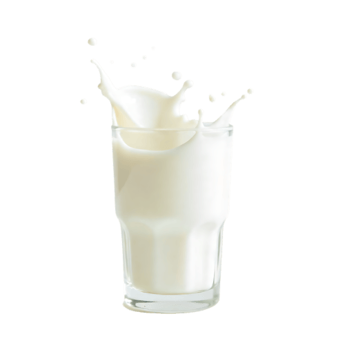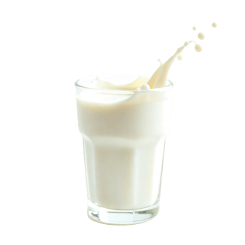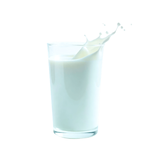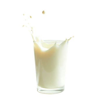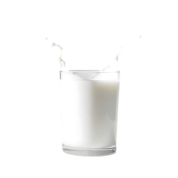 Milk pouring into glass with splash on transparent png