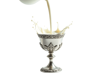 Milk pouring into silver goblet with splash