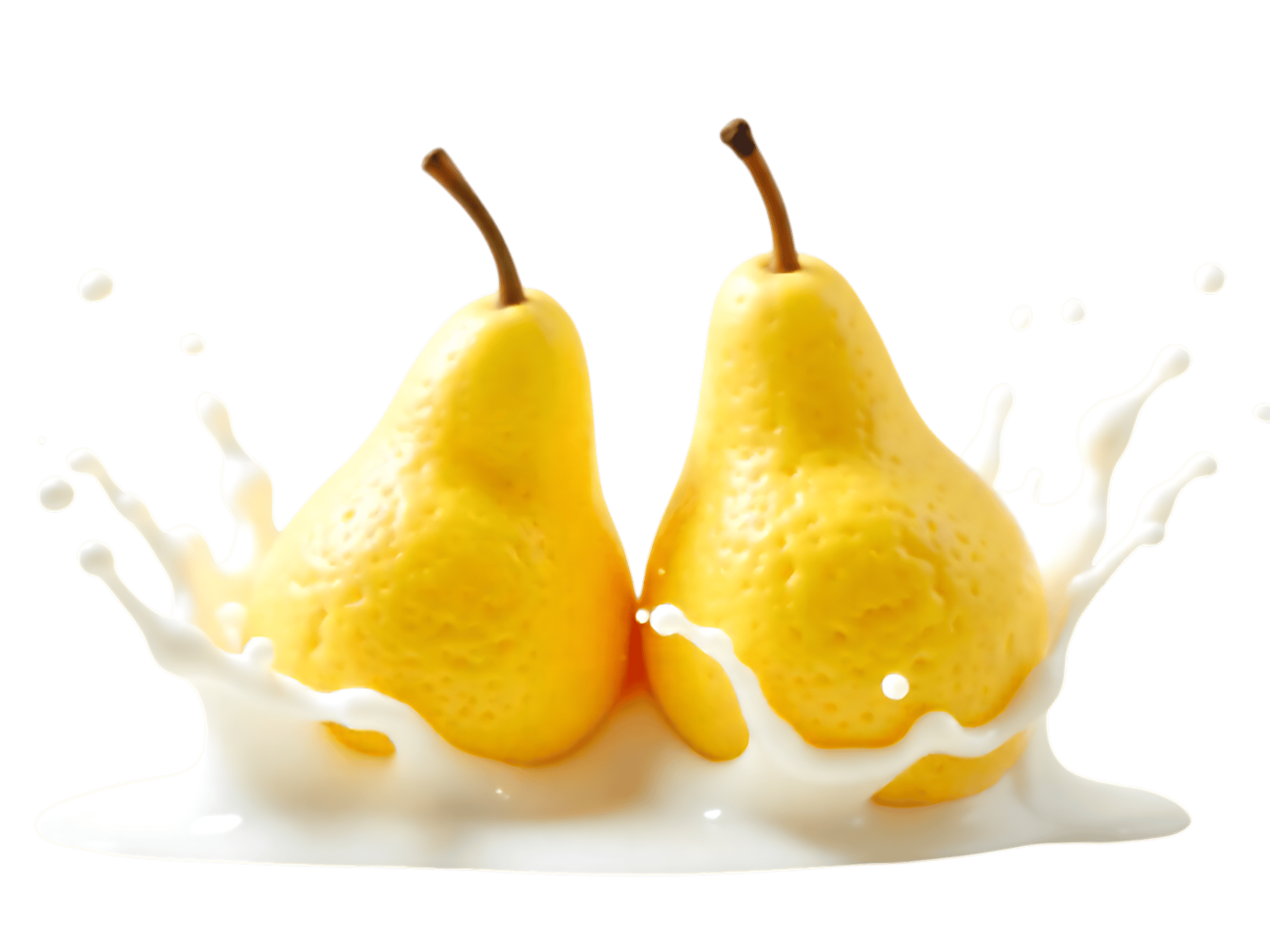 Two yellow pears with milk splash, food photography
