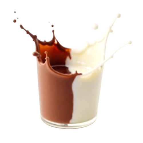 Chocolate and white milk splashing in a glass