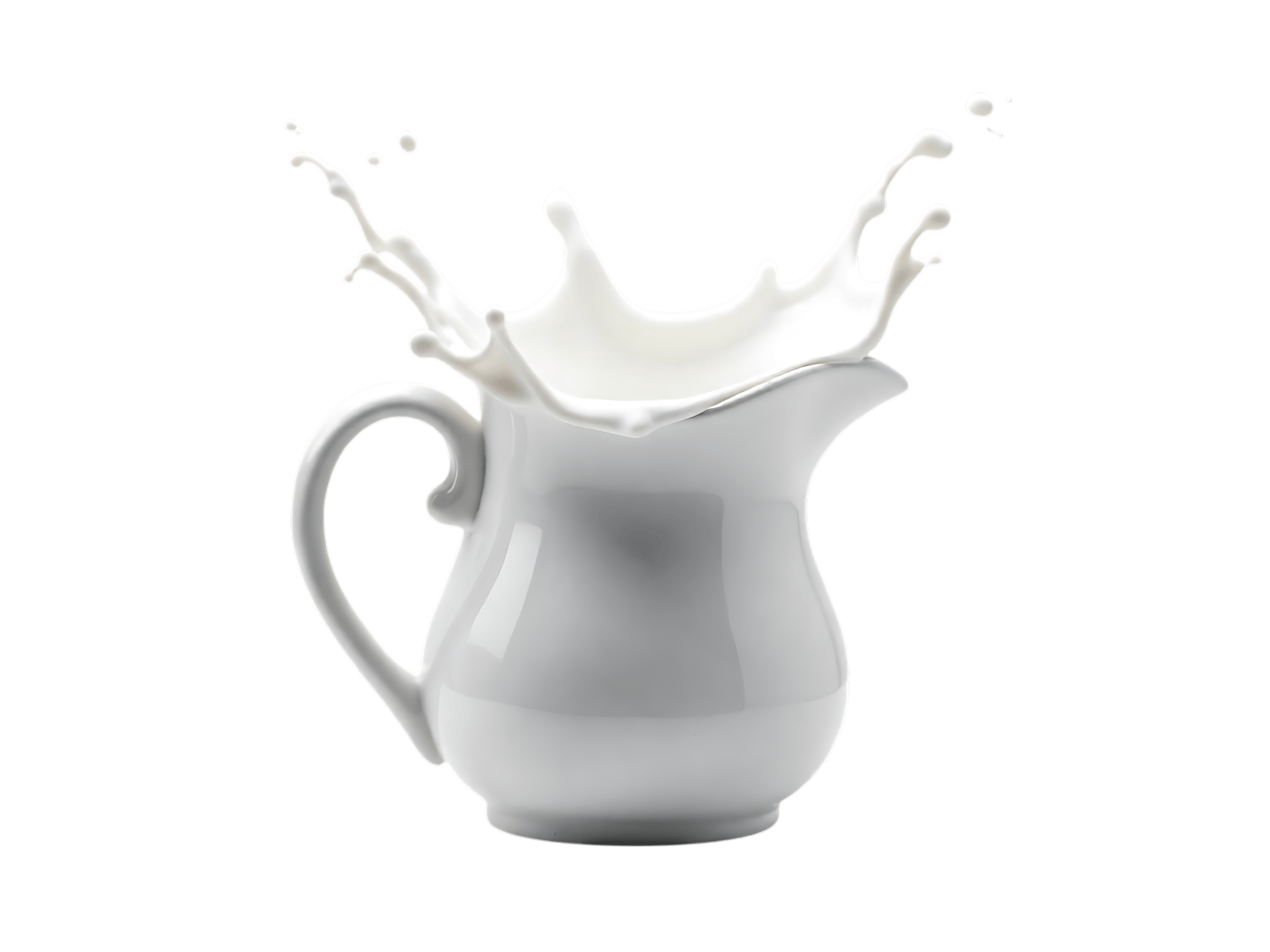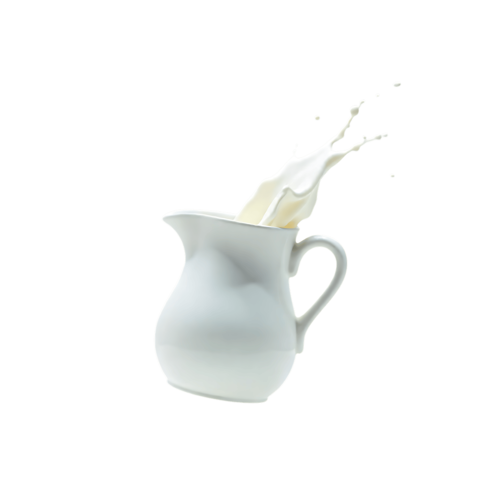Milk splashing out of pitcher on transparent background
