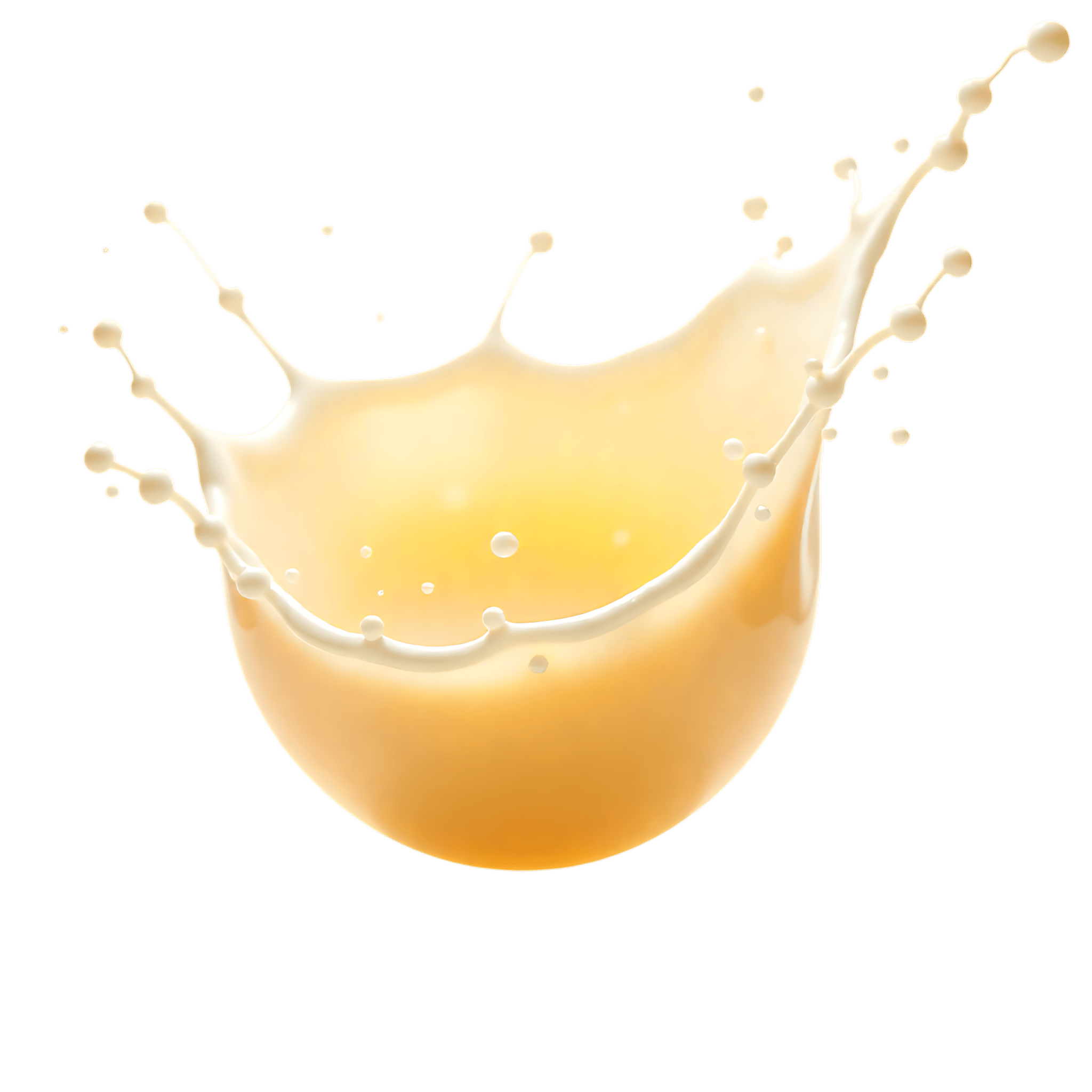 Dramatic milk splash with droplets on a transparent background